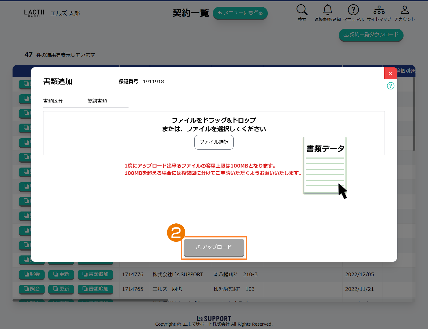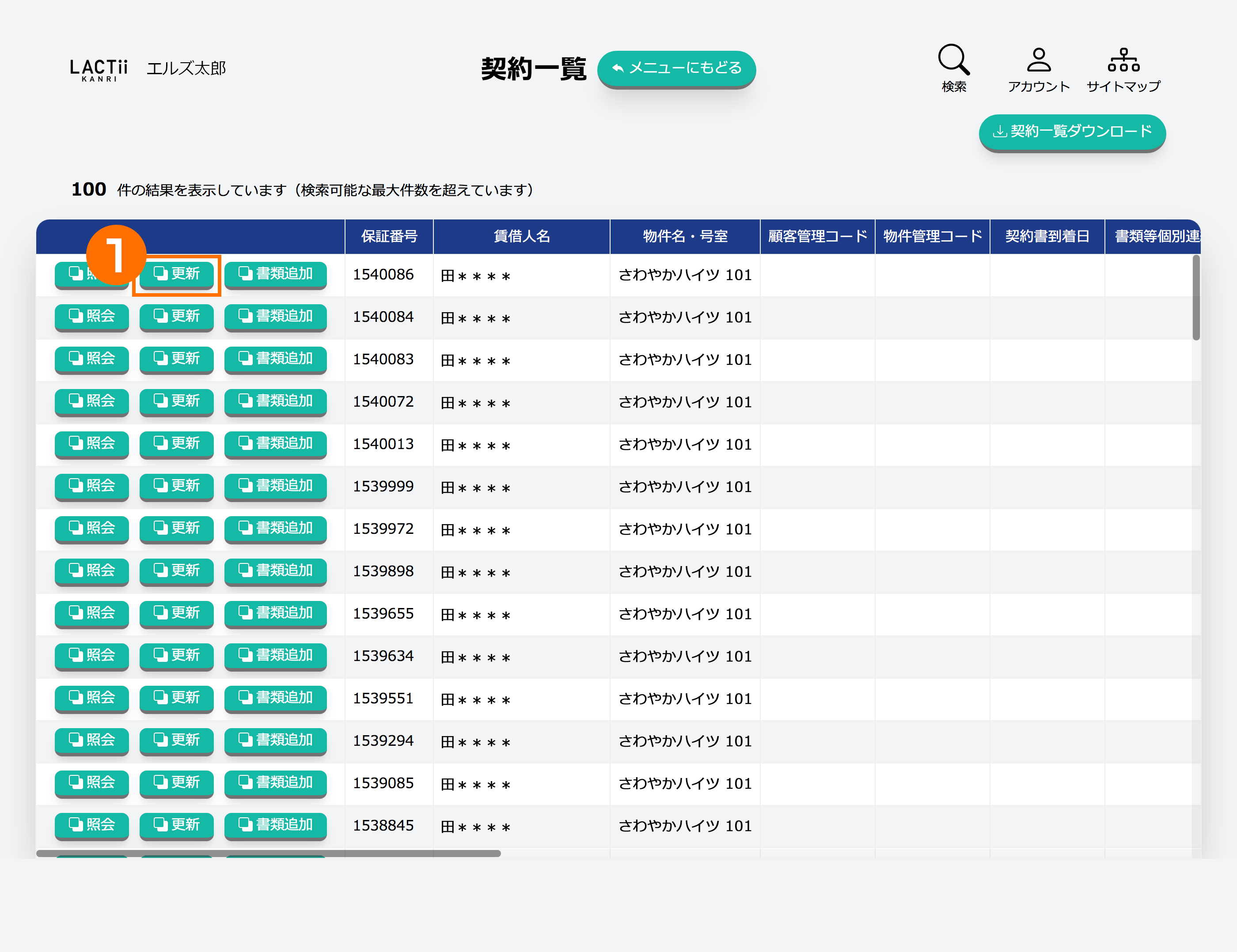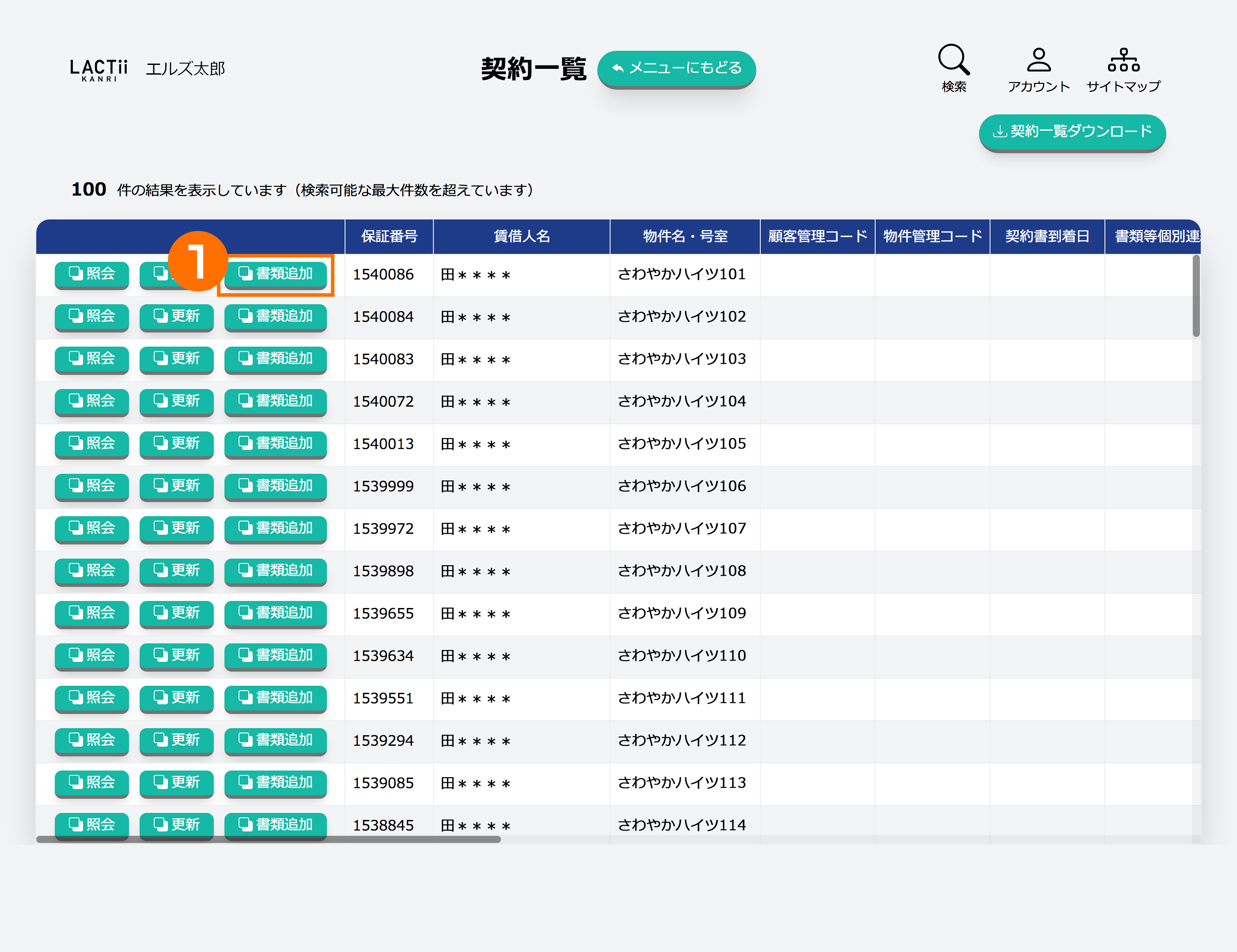 全案件を確認したい場合などは『契約一覧ダウンロード』よりCSVをダウンロードし、ご確認ください。
