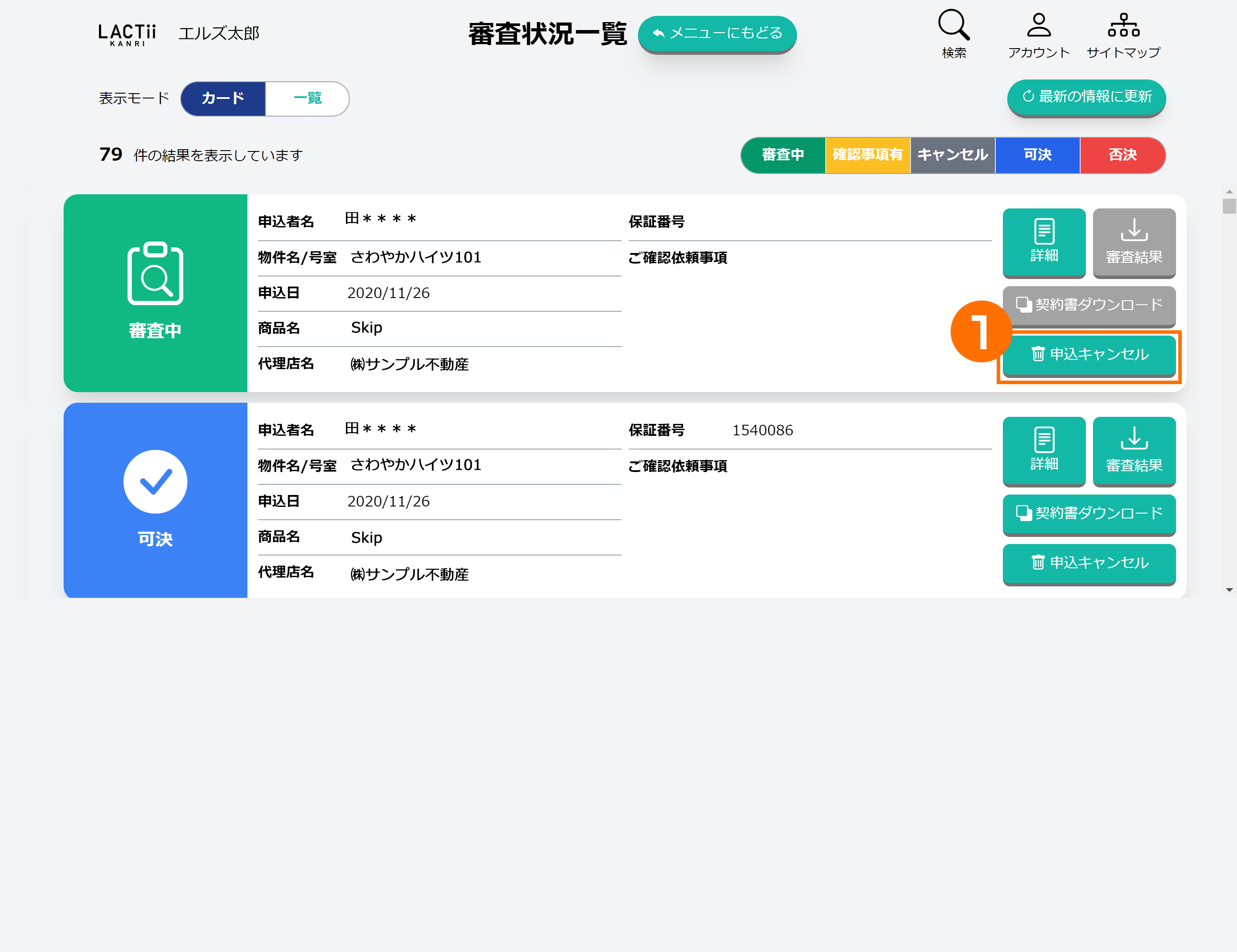 ※申込日から90日を経過すると一覧には表示されない仕様でございます。