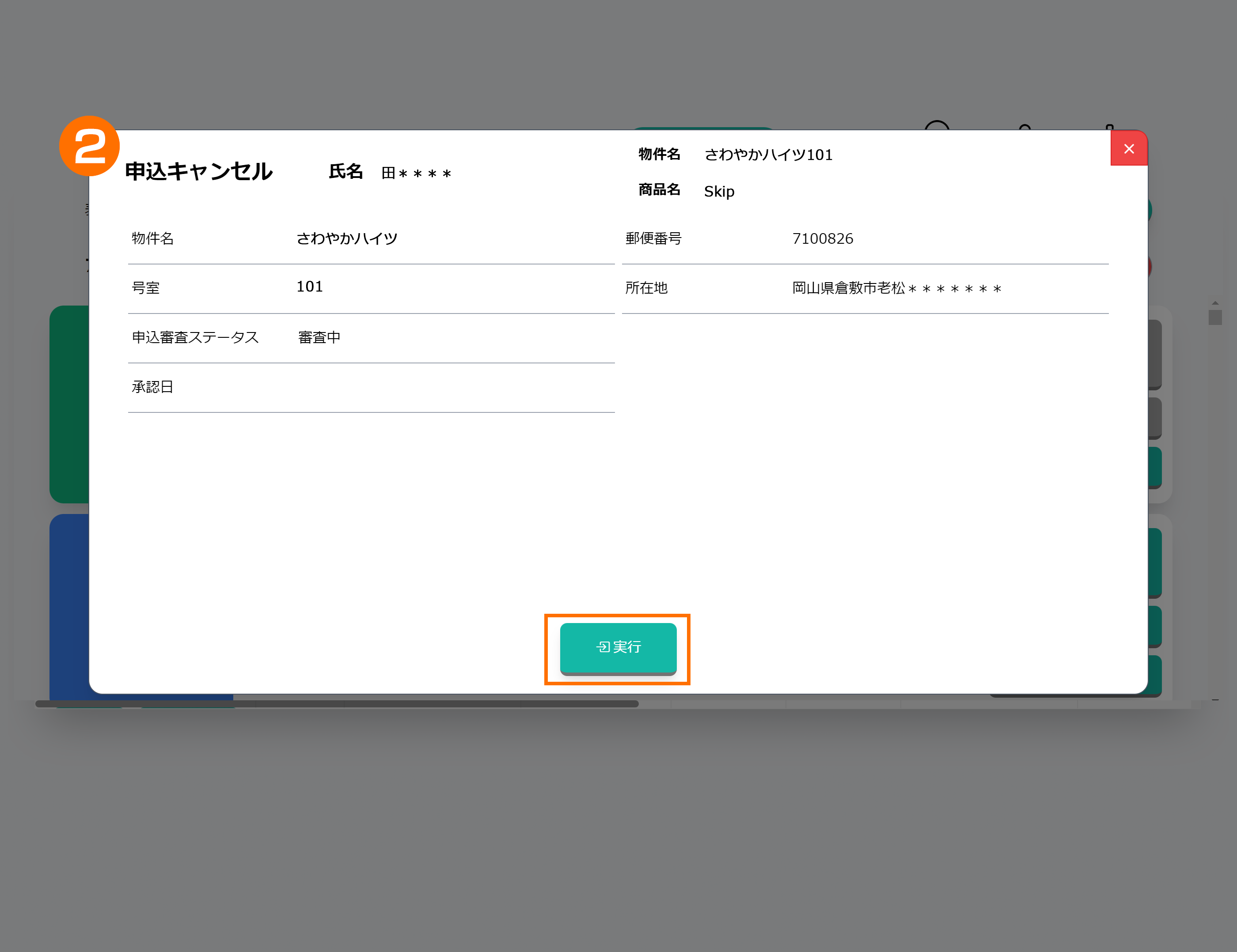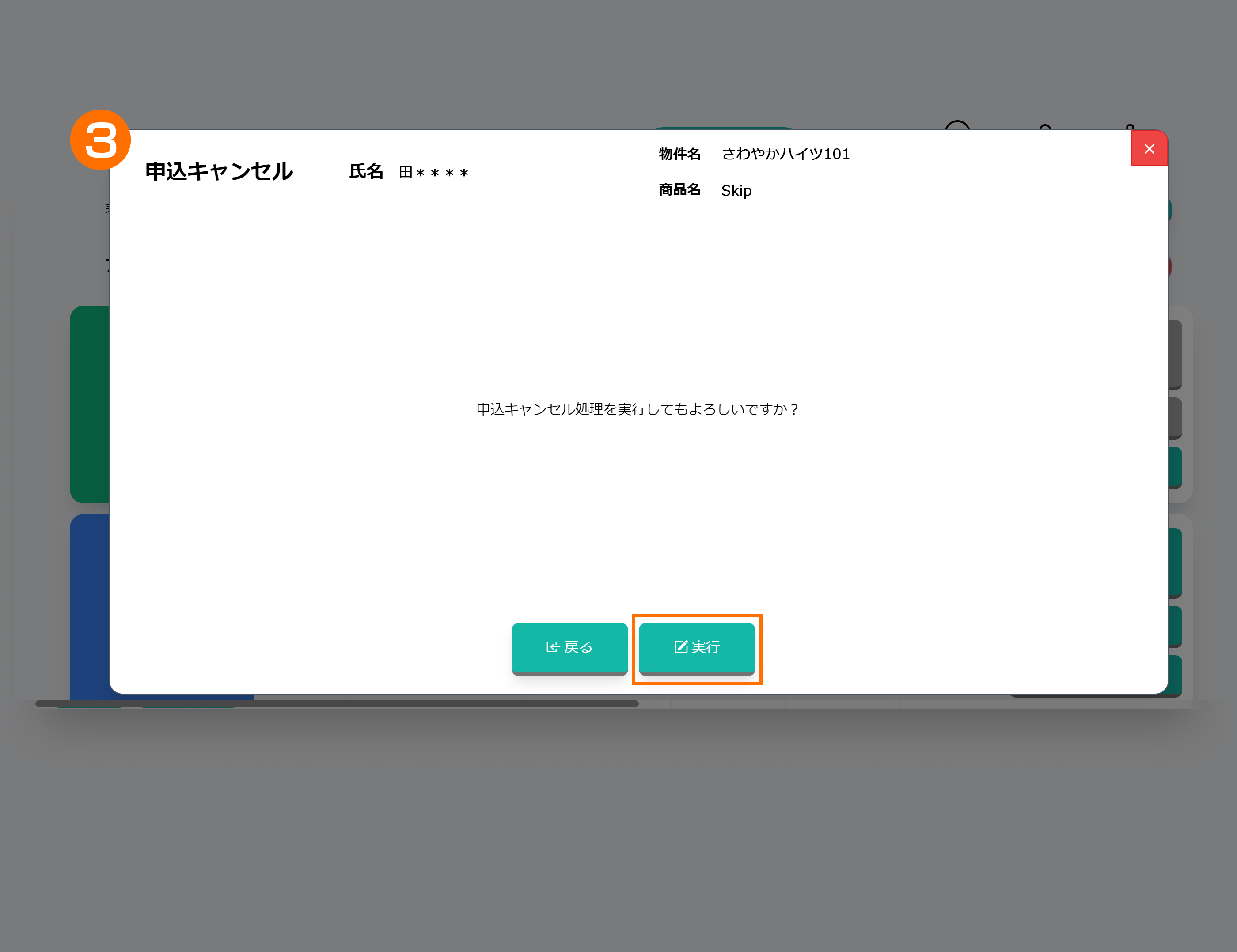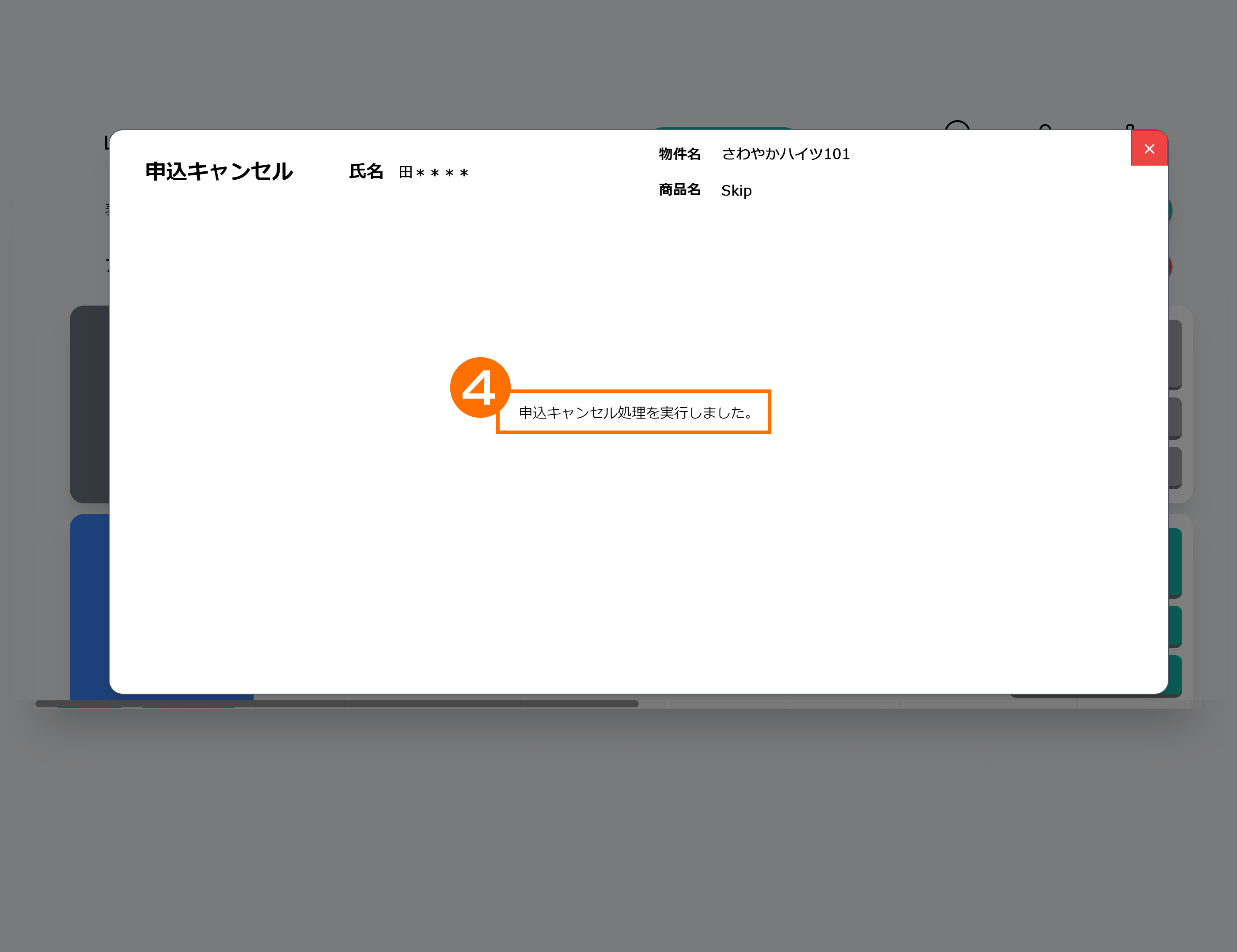 申込キャンセル処理を実行しました。のメッセージをご確認ください。
