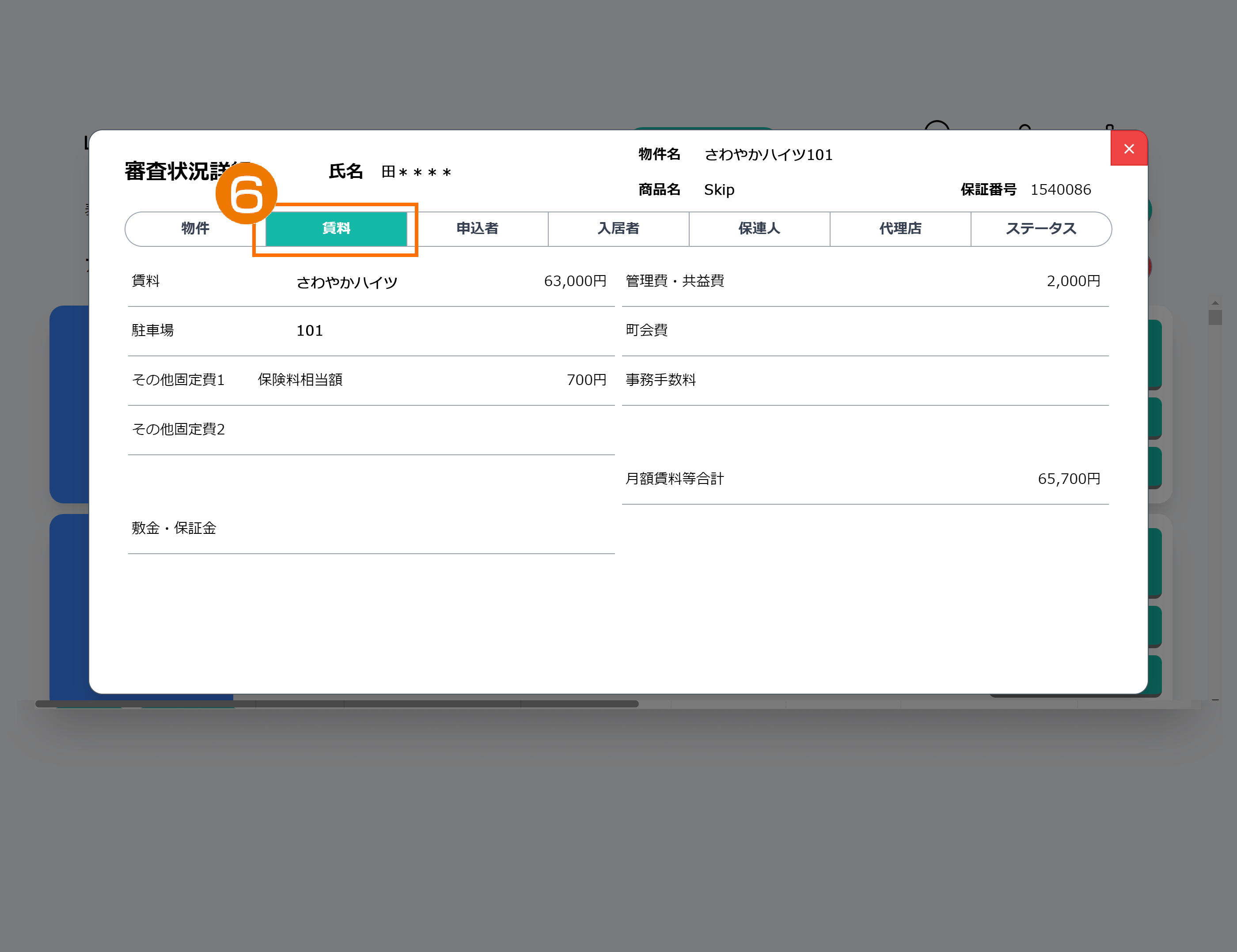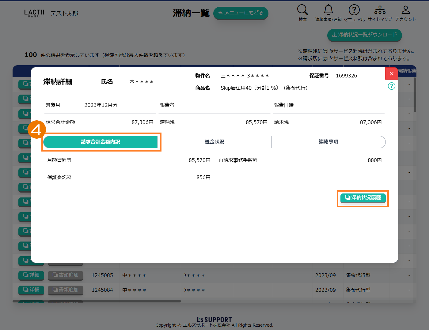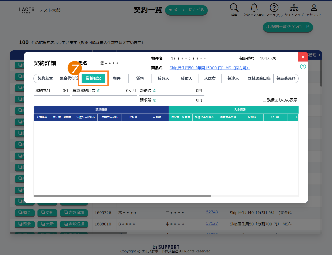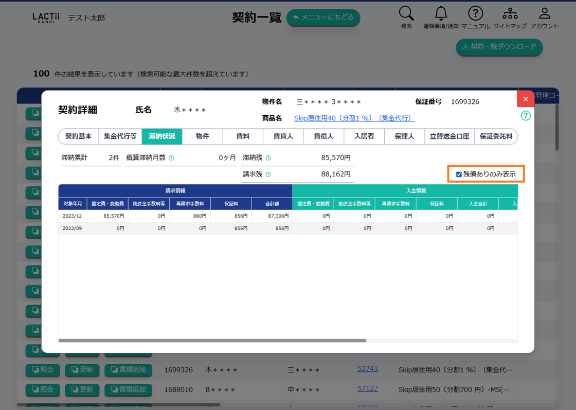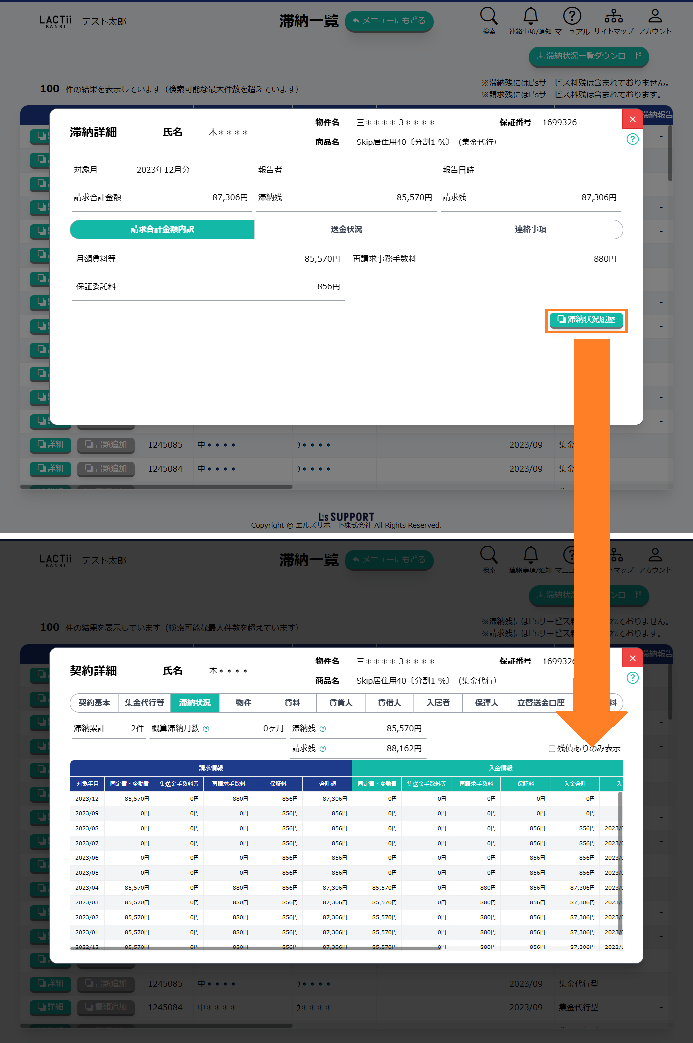 契約詳細ボタンを押すと滞納レコードごとの滞納履歴を確認することができます。