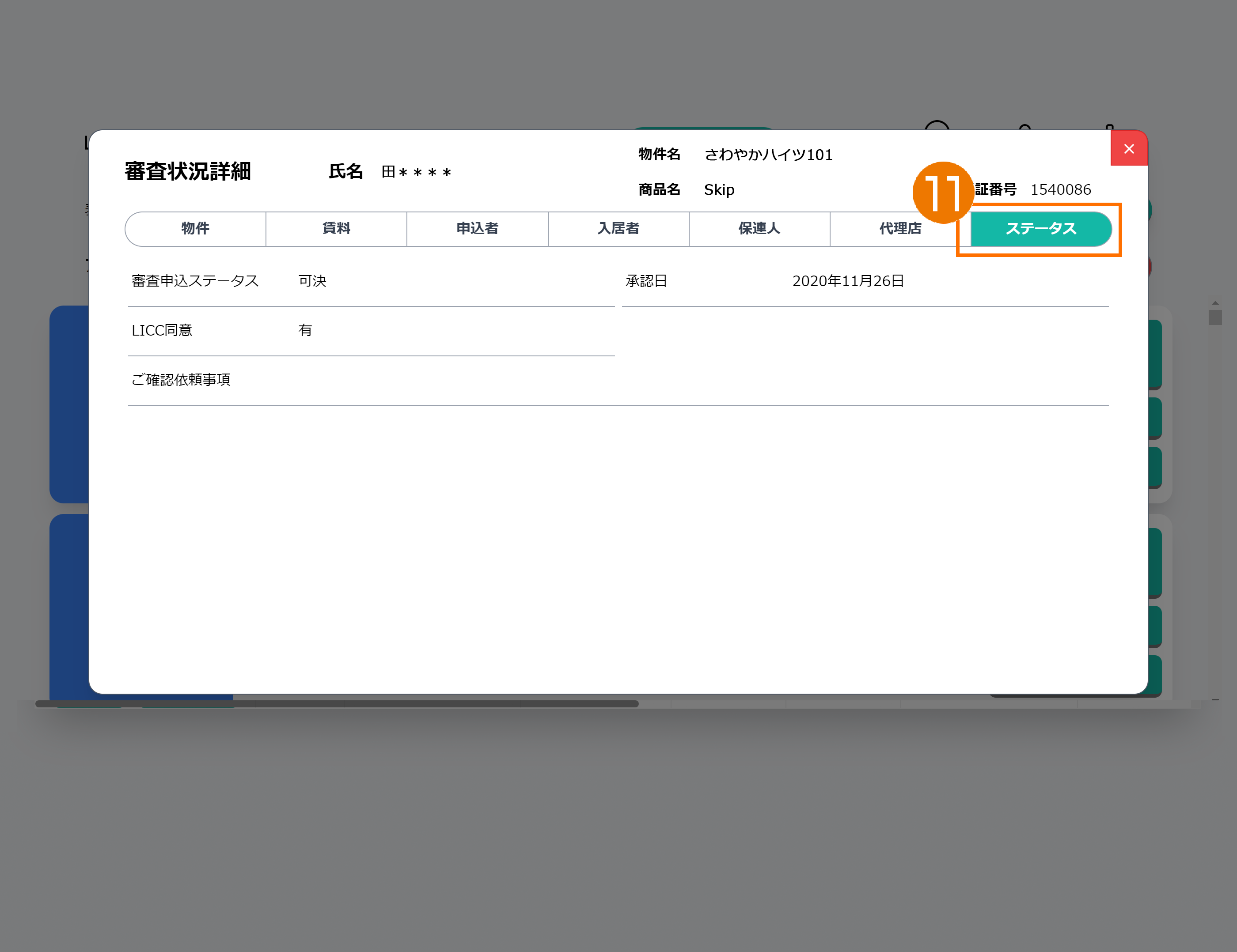 ・『状況履歴』ボタンを押すことで、詳細な手続き状況をご確認いただけます。