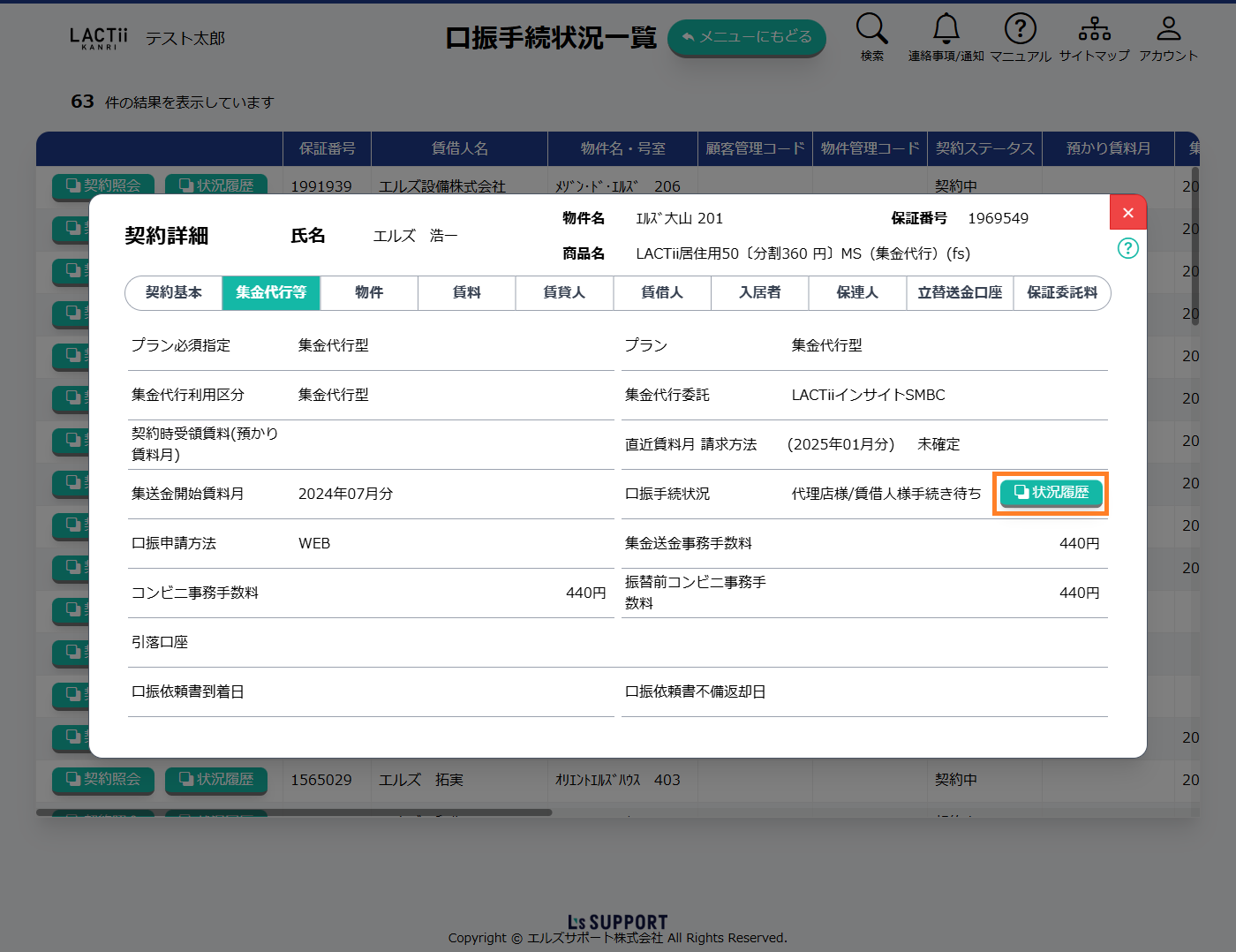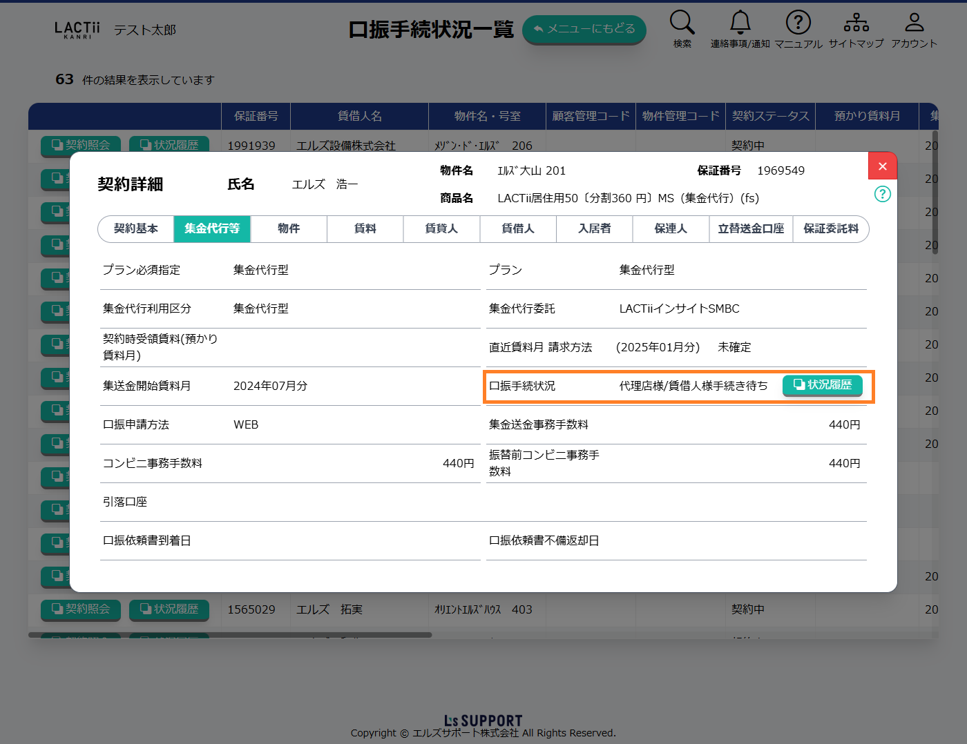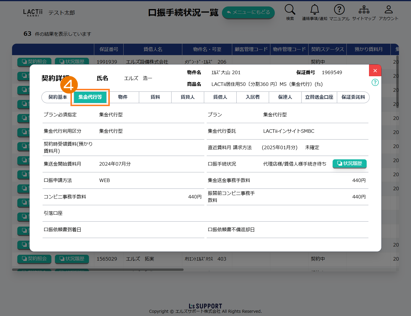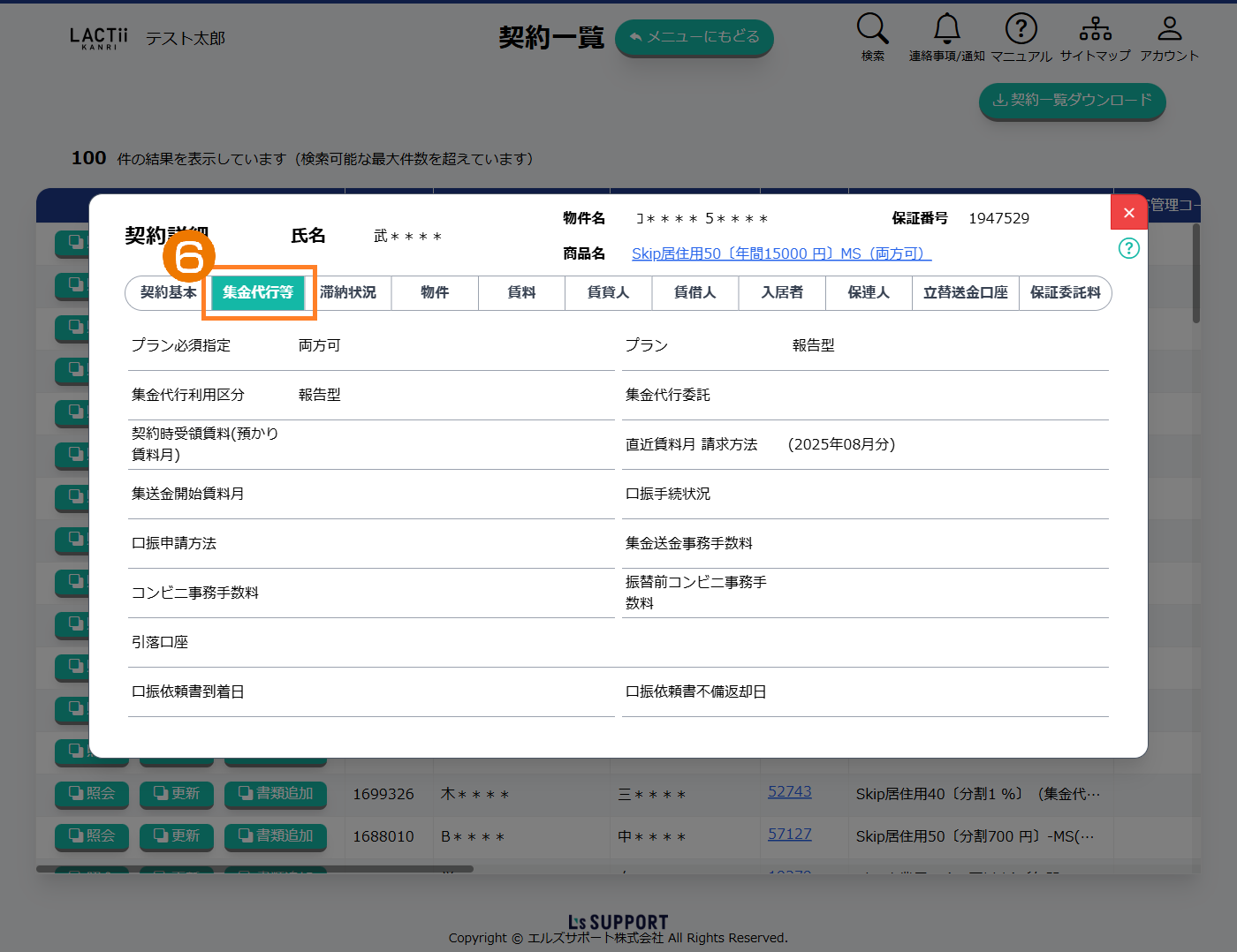 保証に関する情報を閲覧する→契約内容→照会→集金代行等タブでも同様にご確認いただくことができます。