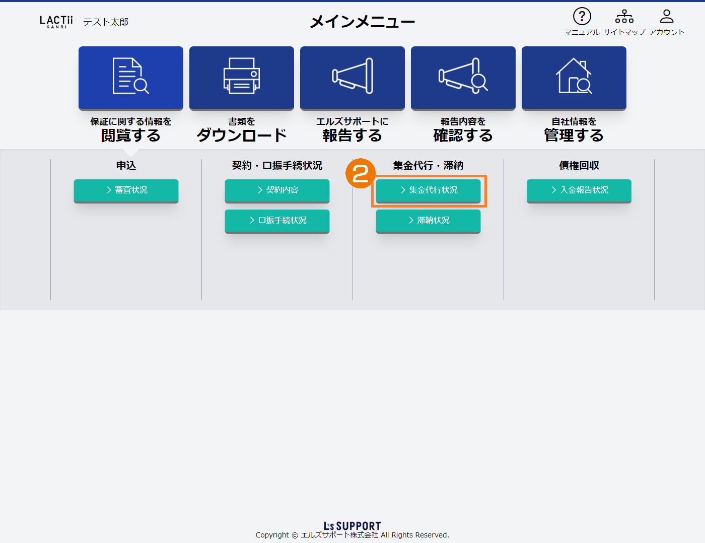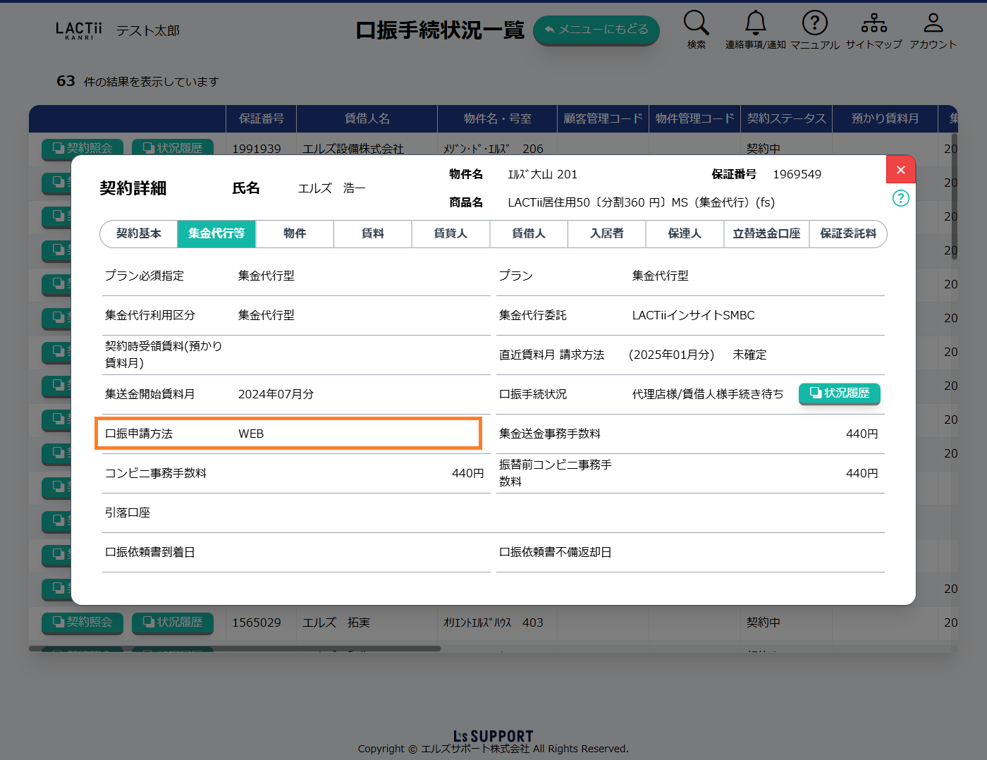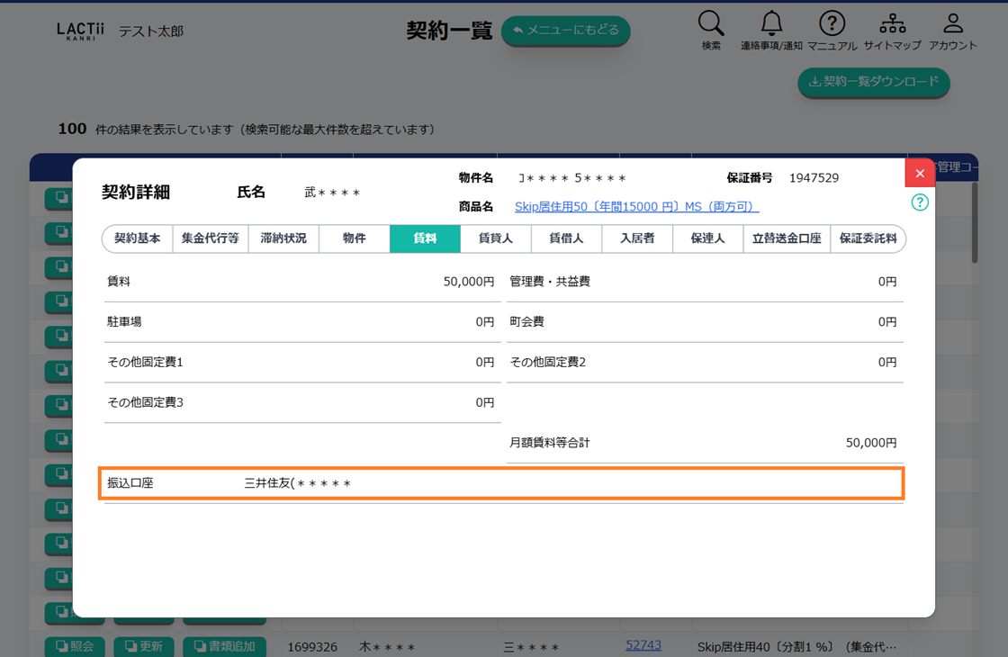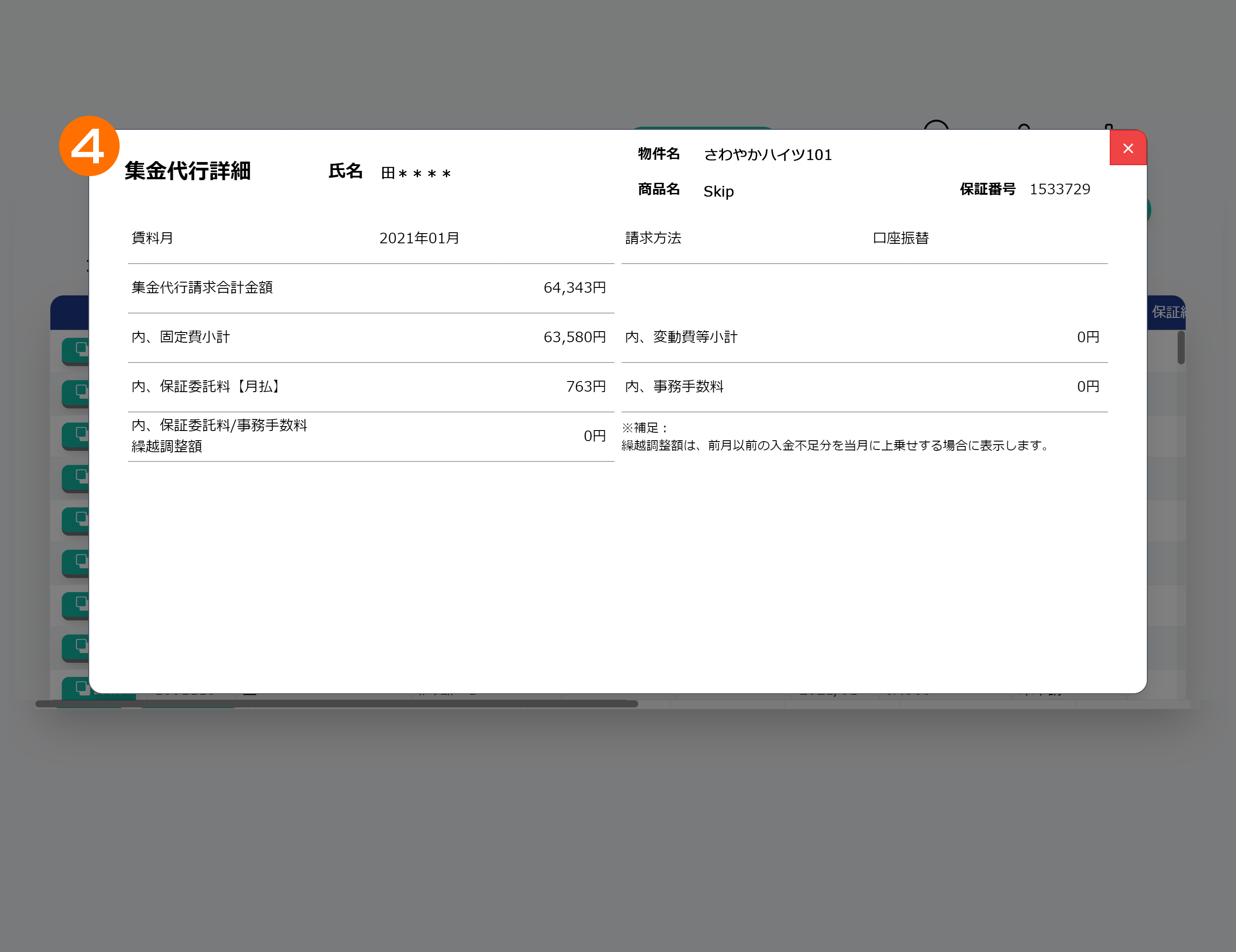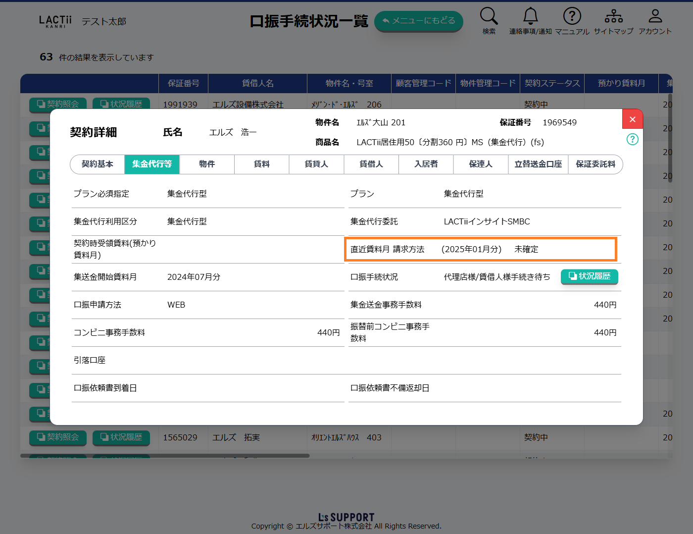 保証に関する情報を閲覧する→契約内容→照会→集金代行等タブでも同様にご確認いただくことができます。