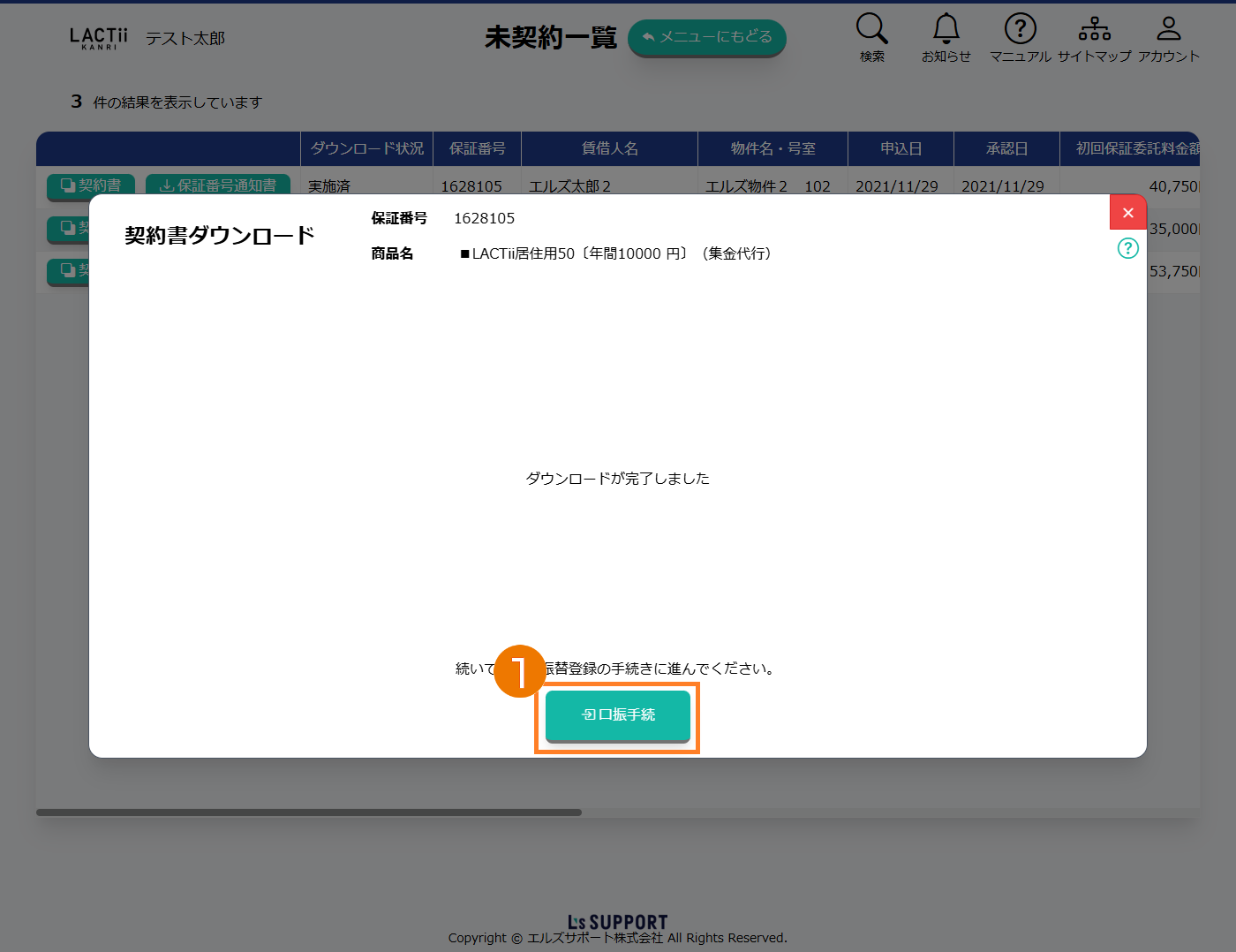 •    代理店様/賃借人様手続き待ち:WEBの場合未アクセスから完了までの間、口座振替依頼書の場合、到着しない限り手続き待ちのままとなります。