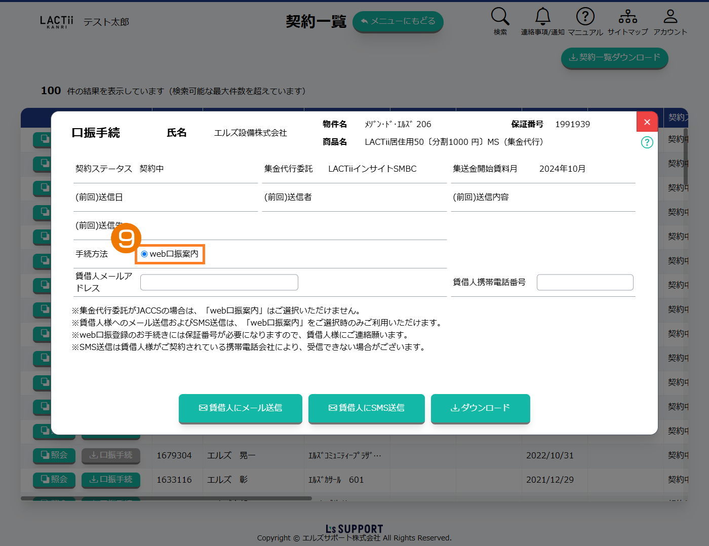 契約書ダウンロード画面にて、「集金代行利用区分」を正式にご選択いただくと、即時プランに合った表示が反映されます。