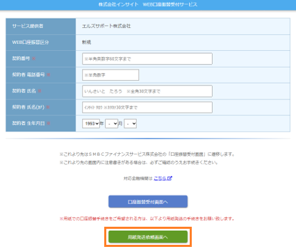 〔商品Skip・Gift-Sなどで口座振替依頼書を選択した場合〕