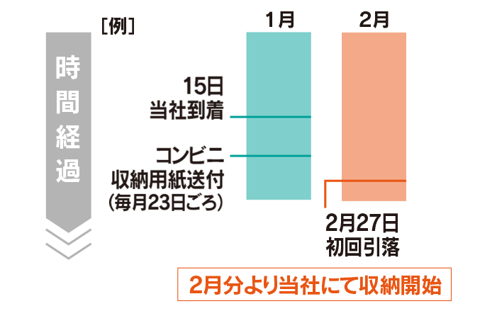 なお、引落しが開始されるまでの間は契約書到着期日を起点にコンビニ払込用紙が発行され、当社にて収納代行を行います。