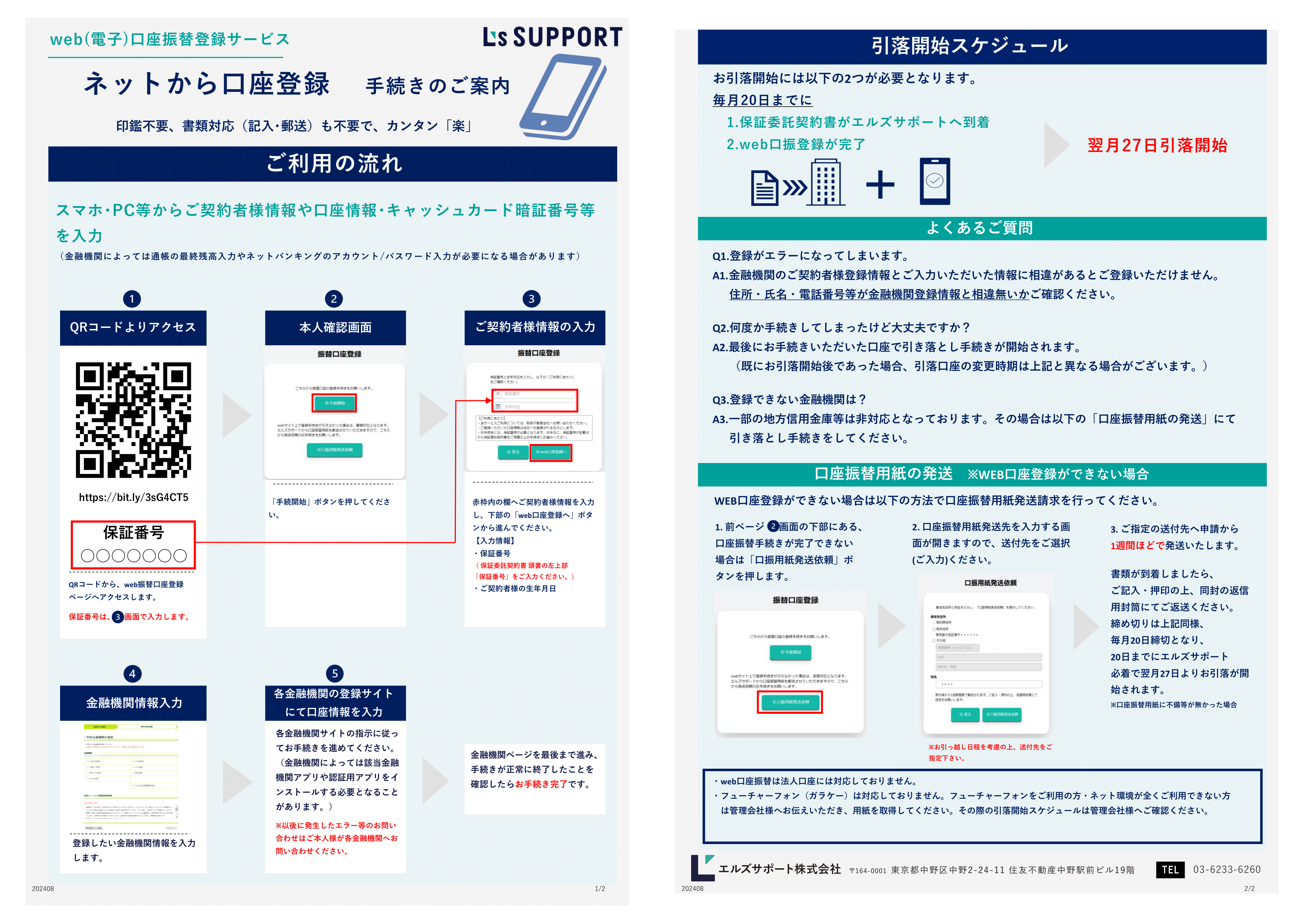 口座振替依頼書が金融機関に受理され次第、ご契約者様口座から賃料等の引落が順次開始いたします。