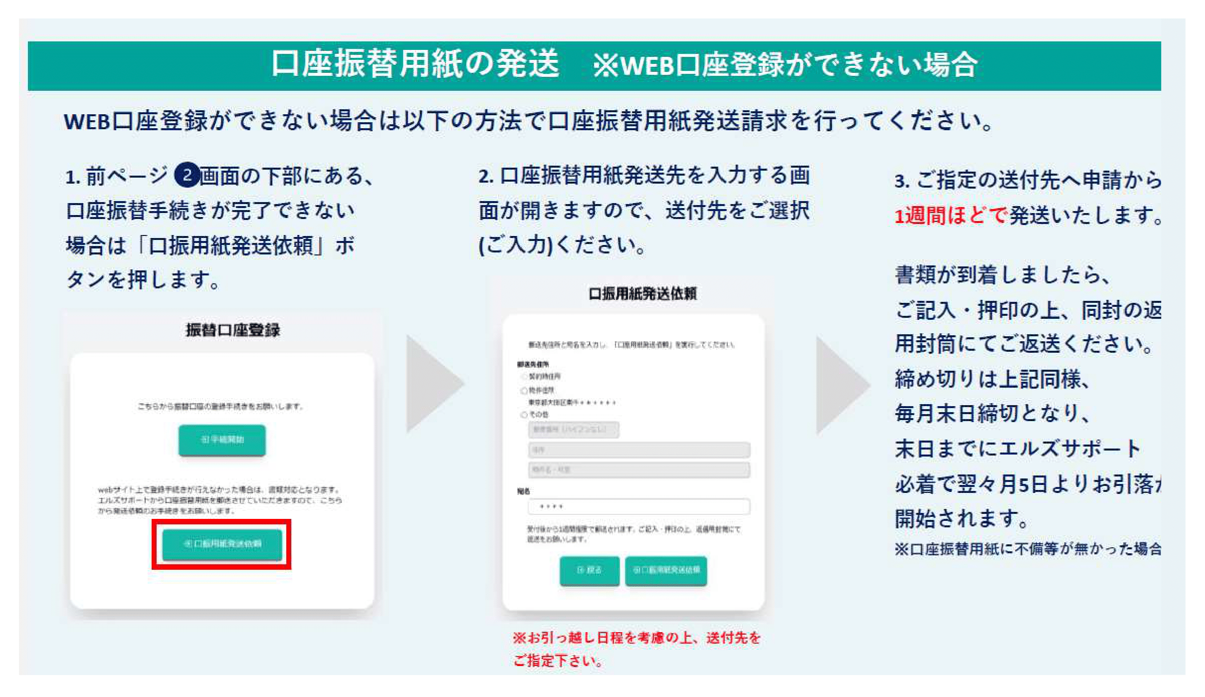 WEBにて口座振替登録ができない契約者様へは口座振替用紙での対応となります。